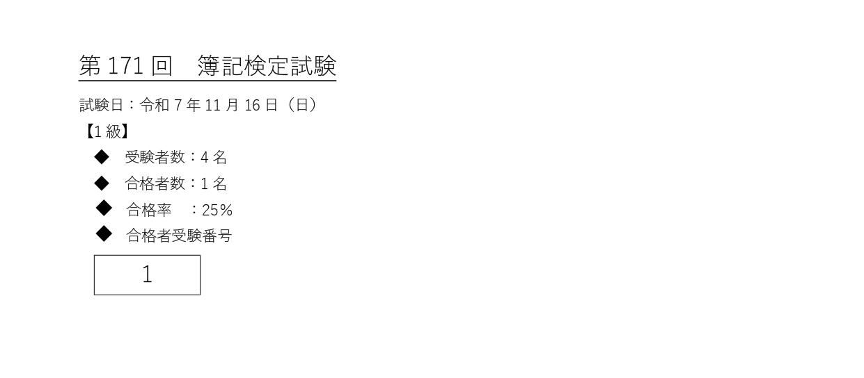 - 第171回簿記検定1級合格発表